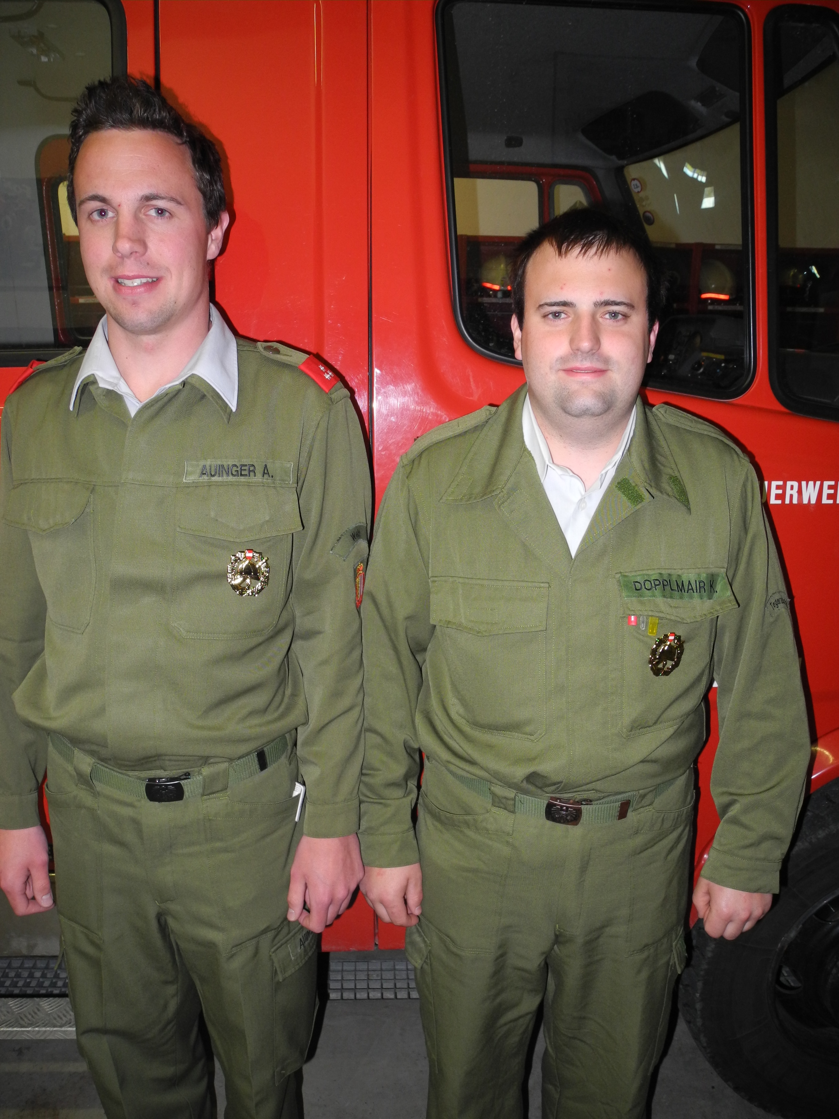 Von der FF Tegernbach konnten sich Andreas Auinger und Klaus Dopplmair über das Abzeichen freuen.