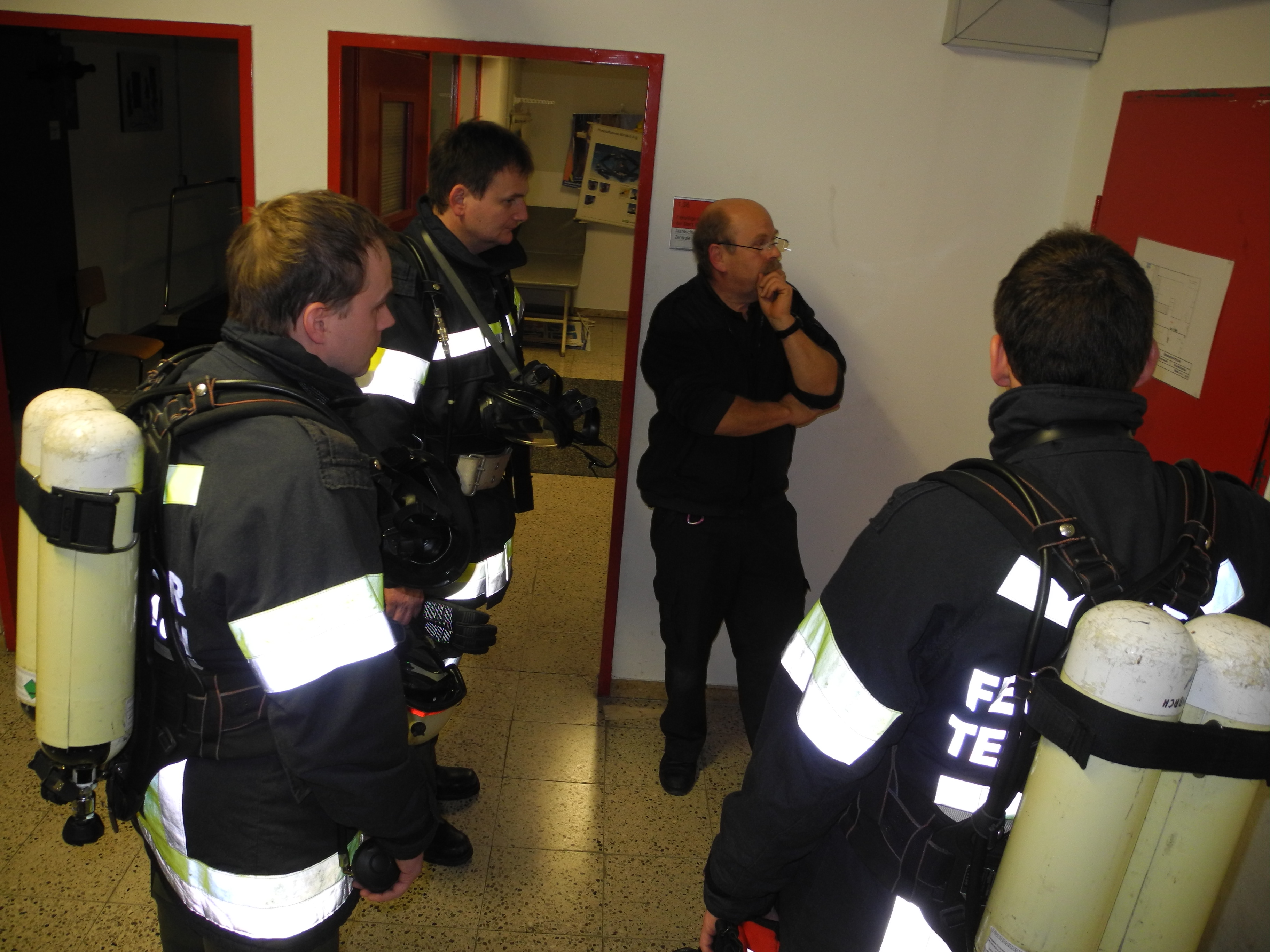 Drei Atemschutztrupps nahmen an der Übung teil. Im Übungskäfig wurde die rasche Menschenrettung, das Vorgehen mit Schlauchleitung zum Brandherd und die Bergung von Gefährlichen Stoffen beübt.