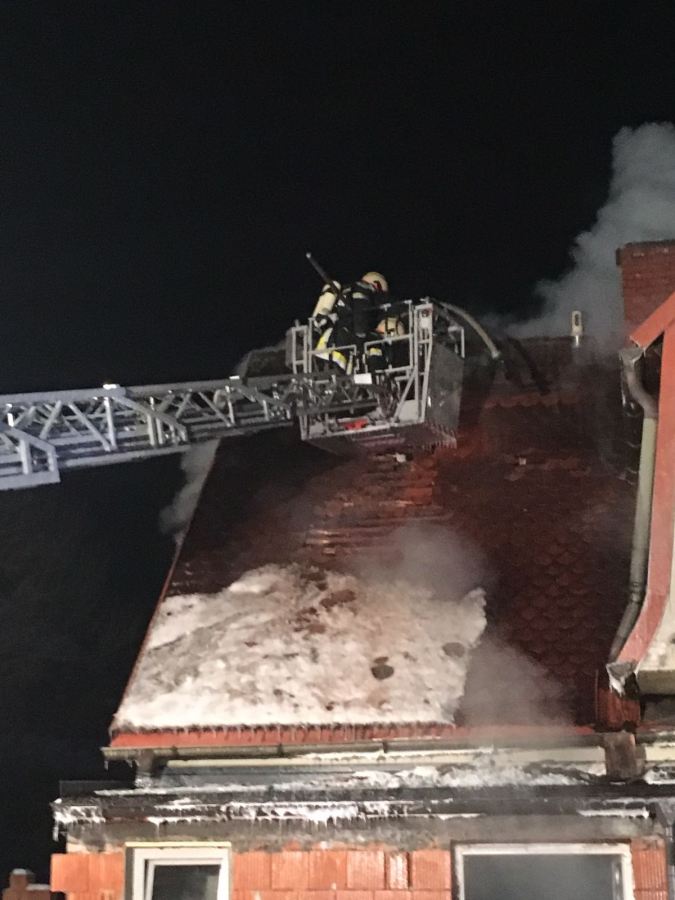 Obergeschoss eines Wohnhauses in Vollbrand