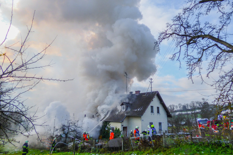 12 Feuerwehren bei Wohnhausbrand in Wallern im Einsatz
