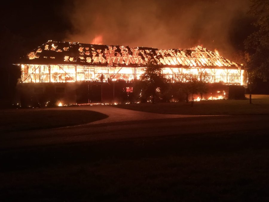 Wirtschaftstrakt eines Bauernhofes in Vollbrand