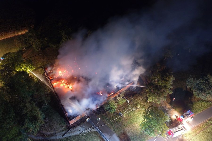 Wirtschaftstrakt eines Bauernhofes in Vollbrand