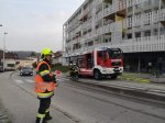 Noch während der Arbeiten im Dachgeschoss wurde in einem anderen Gebäudeteil ein Schadstoffaustritt festgestellt. Zur Unterstützung mit diversen Geräten zum Auffangen und Umpumpen wurde das Ölfahrzeug angefordert.