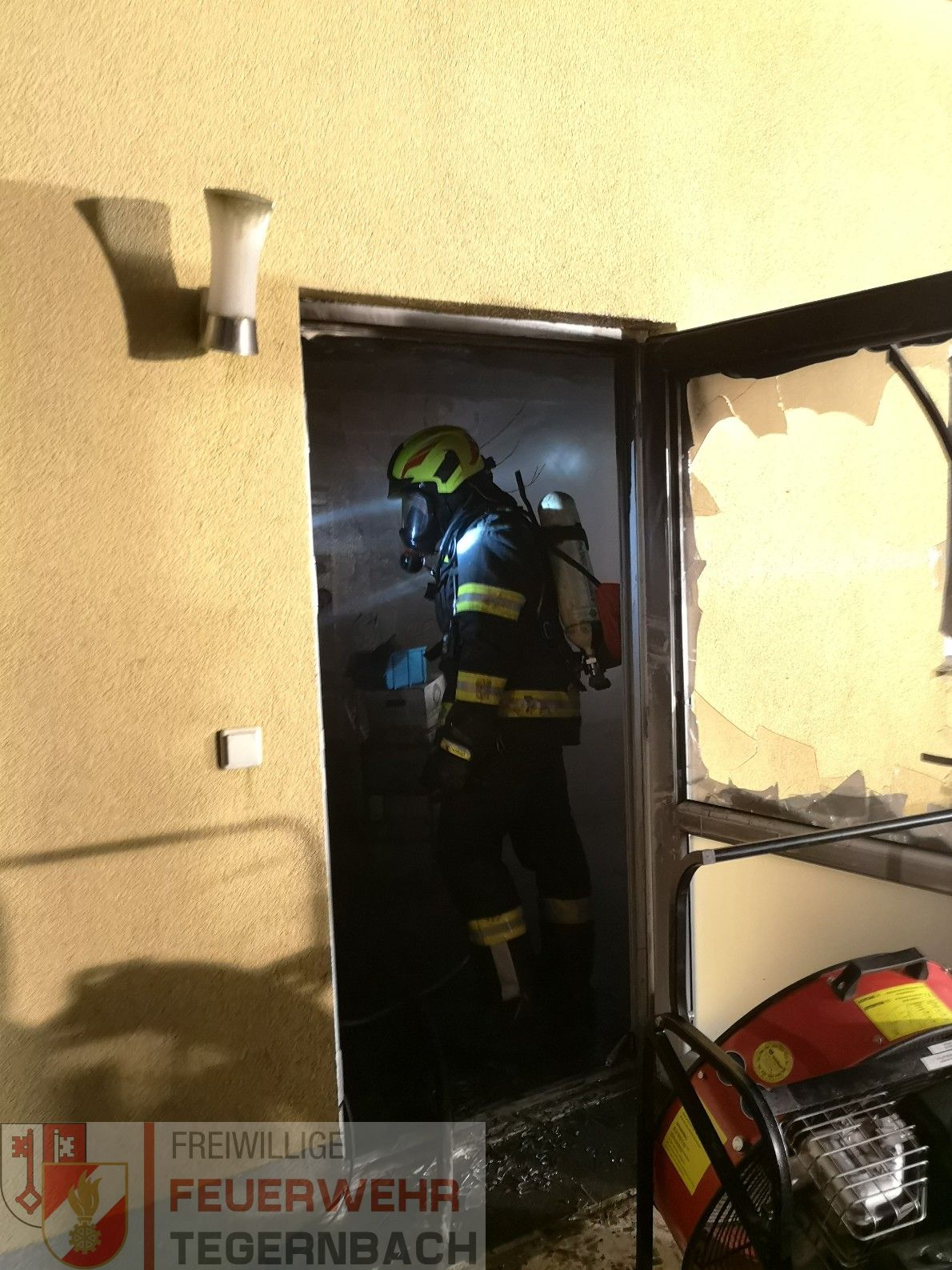 Die FF Tegernbach stand mit 9 Einsatzkräften, sowie weiteren 9 Mann auf Bereitschaft im Feuerwehrhaus, im Einsatz.
