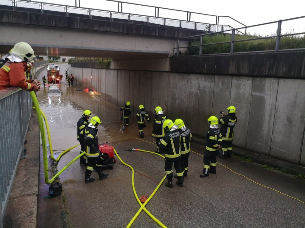 Dort unterschätzte ein PKW-Lenker die Lage und blieb mit seinem Fahrzeug in der bereits überfluteten Unterführung stecken. Die Insassen konnten sich gerade noch über das Fenster retten, da sich aufgrund des rasant ansteigenden Wasserstandes die Türen nicht mehr öffnen ließen.
