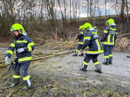 Am Donnerstag, 17.02.2022 wurde die Feuerwehr Tegernbach zu einem Sturmschaden in der Ortschaft Margarethen verständigt. Nach dem anhaltenden Sturmtief stürzte eine Esche über die Straße. Der umgefallene Baum wurde mit Hilfe der Motorsäge zerkleinert und entfernt.