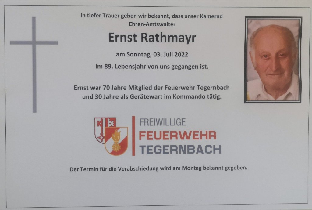 In tiefer Trauer müssen wir bekannt geben, dass unser langjähriger Kamerad Ehren-Amtswalter Ernst Rathmayr am 03. Juli 2022 völlig überraschend im 89. Lebensjahr von uns gegangen ist.