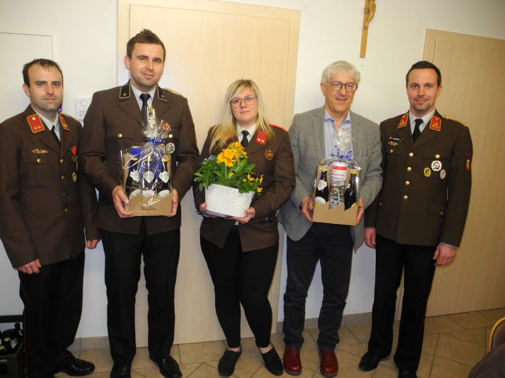 Abschließend wurden dem scheidenden Schriftführer Michael Schneeberger (8 Jahre in seiner Funktion), Simone Rudolf (5 Jahre Jugendbetreuerin) und Amtsleiter Christian Falkenburger als Dank für die jahrelang geleistete Unterstützung ein kleines Geschenk übergeben.