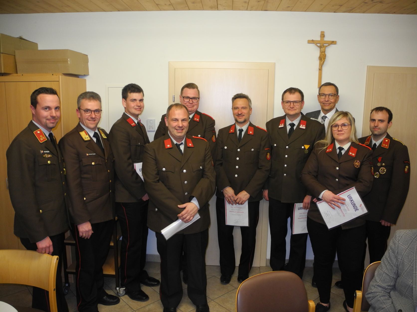 Kommandant HBI Andreas Auinger konnte Bürgermeister Klaus Höllerl, Amtsleiter Christian Falkenburger und Abschnittsfeuerwehrkommandant Johann Kronsteiner sowie 37 Mitglieder begrüßen.
