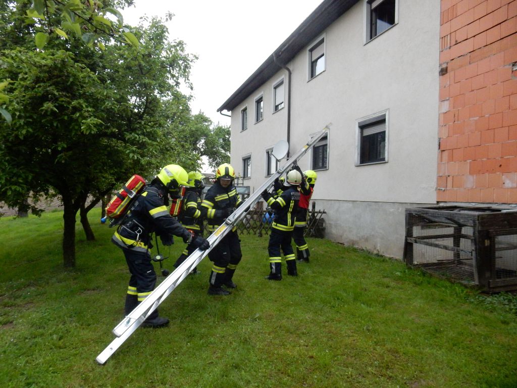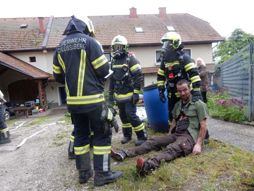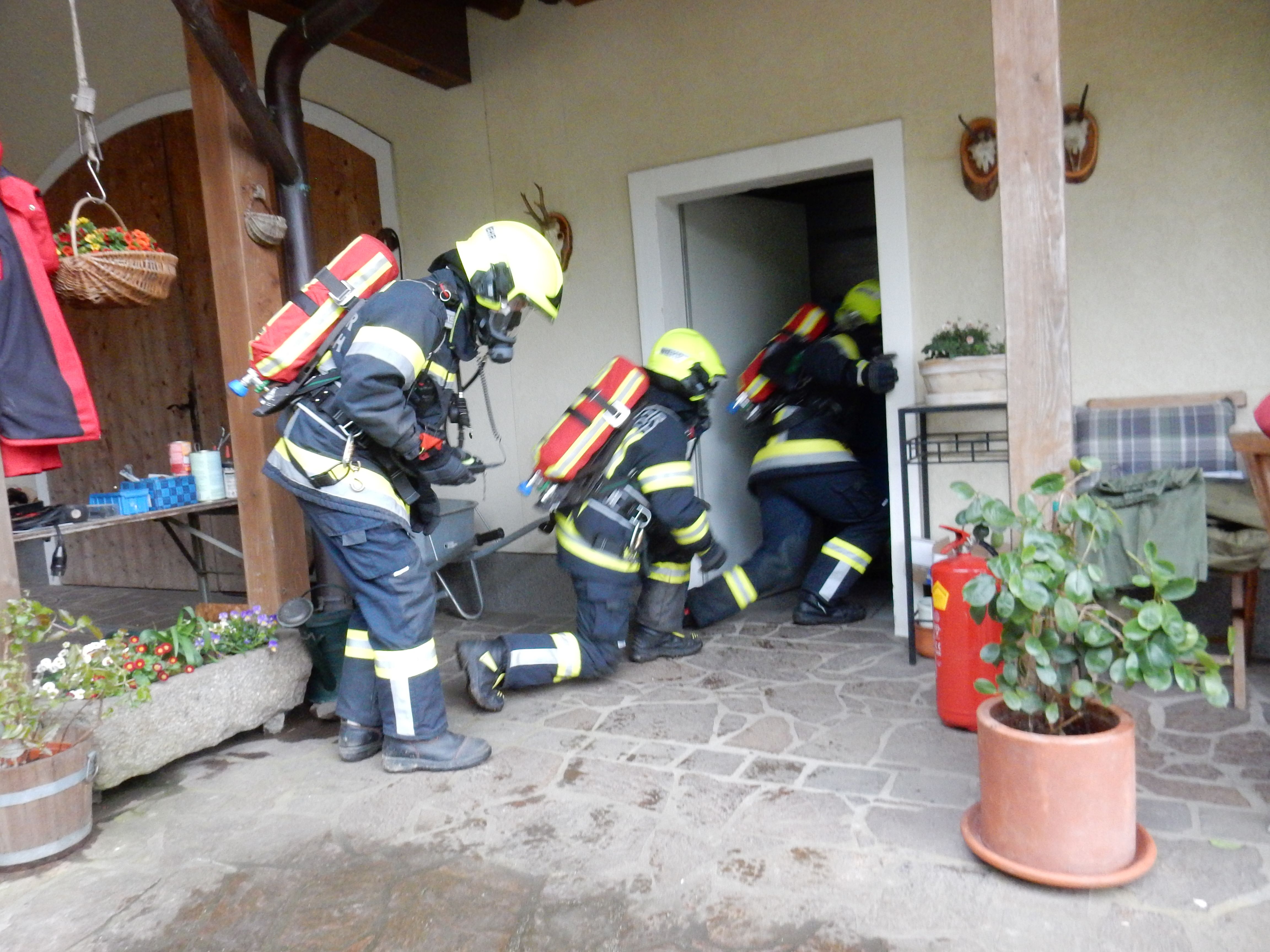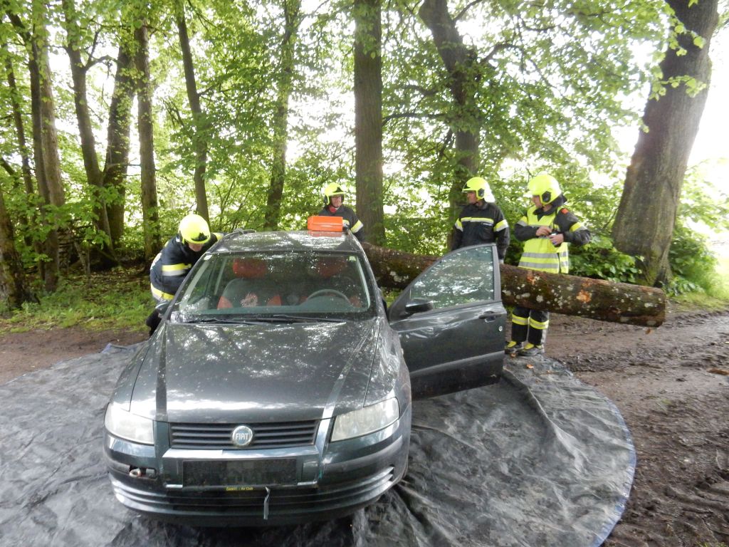 „Heizraumbrand – mehrere Personen vermisst“ lautete die Alarmierung für die drei Schlüßlberger Feuerwehren. Kurz vor Eintreffen des ersten Fahrzeuges versperrte jedoch ein verunfalltes Fahrzeug, welches aufgrund massiver Sturmböen von einem Baum getroffen wurde, die schmale Zufahrt zu diesem etwas abgelegenen Objekt in der Ortschaft Parz.