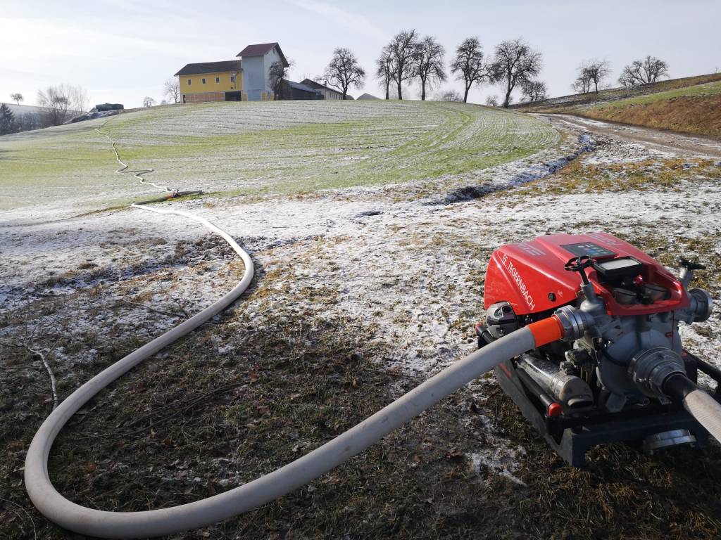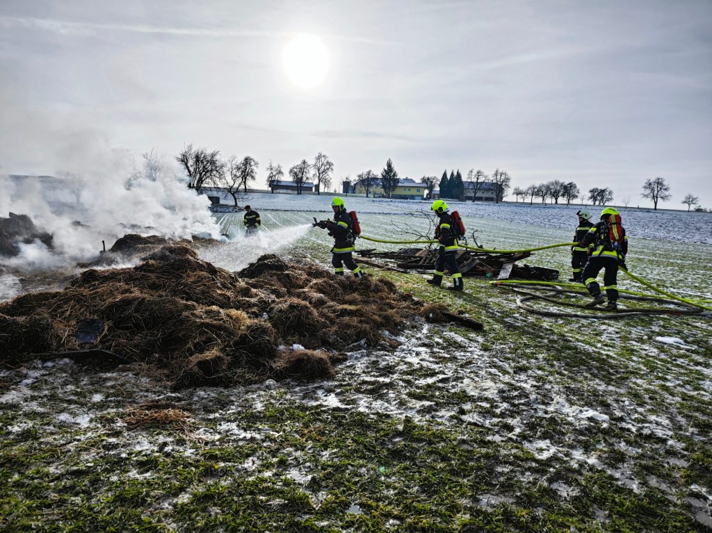 Mit Hilfe eines Teleskopladers wurde im Anschluss das glosende Stroh ausgeräumt und im Freien abgelöscht. Zwei Zubringerleitungen wurden zur Löschwasserversorgung der Tanklöschfahrzeuge errichtet. Eine weitere Zubringerleitung wurde als Reserve aufgebaut, da aufgrund der niedrigen Temperaturen Schlauchleitungen einzufrieren drohten. Mit dem Großtanklöschfahrzeug der FF Wels wurde der verwendete Löschwasserbehälter in Trattenegg im Pendelverkehr befüllt.