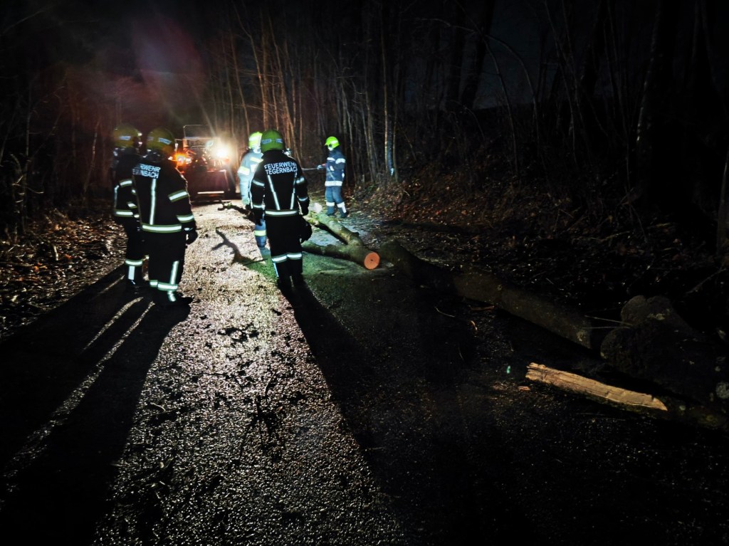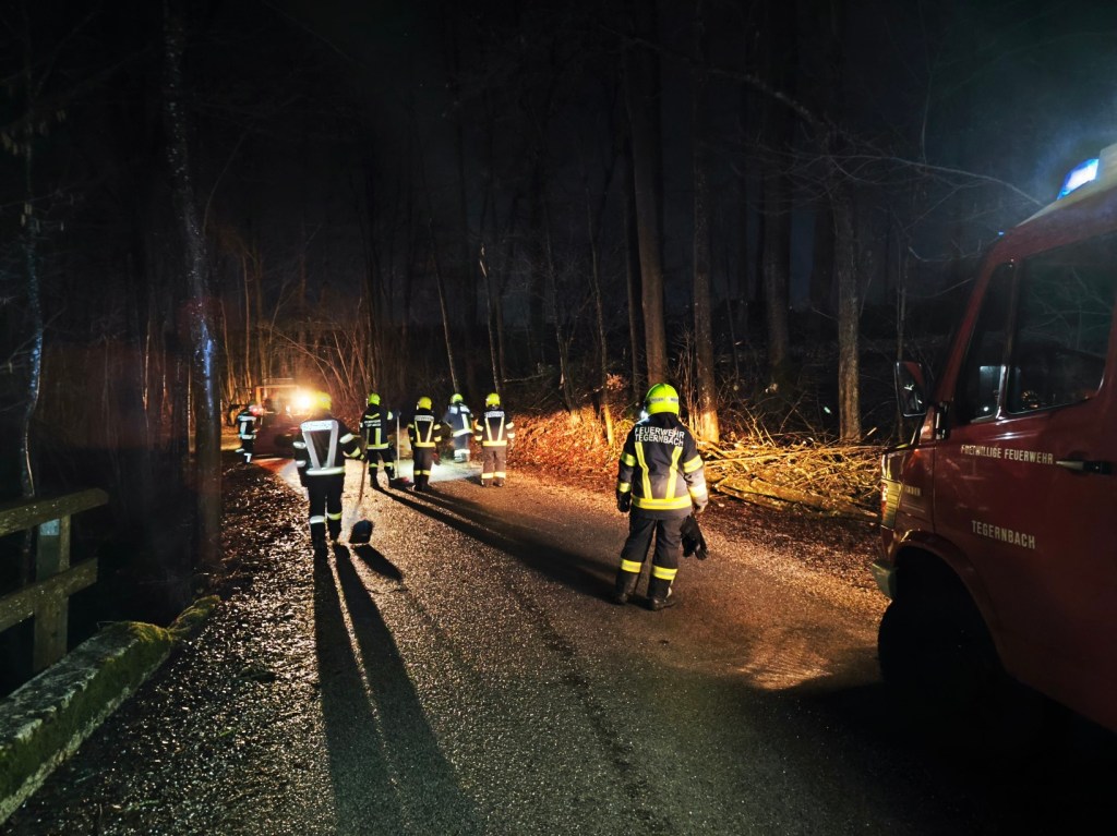 Am Freitag, 26. Jänner 2024 wurde kurz vor 21:00 Uhr die FF Tegernbach zu einem Einsatz „Baum über Straße“ nach Margarethen alarmiert. Durch eine heftige Sturmböe stürzten zwei Bäume um und blockierten die Fahrbahn von Tegernbach Richtung Margarethen.