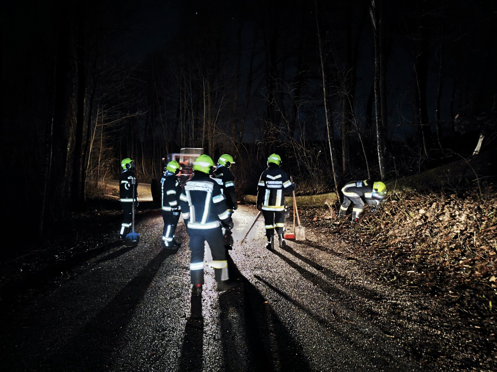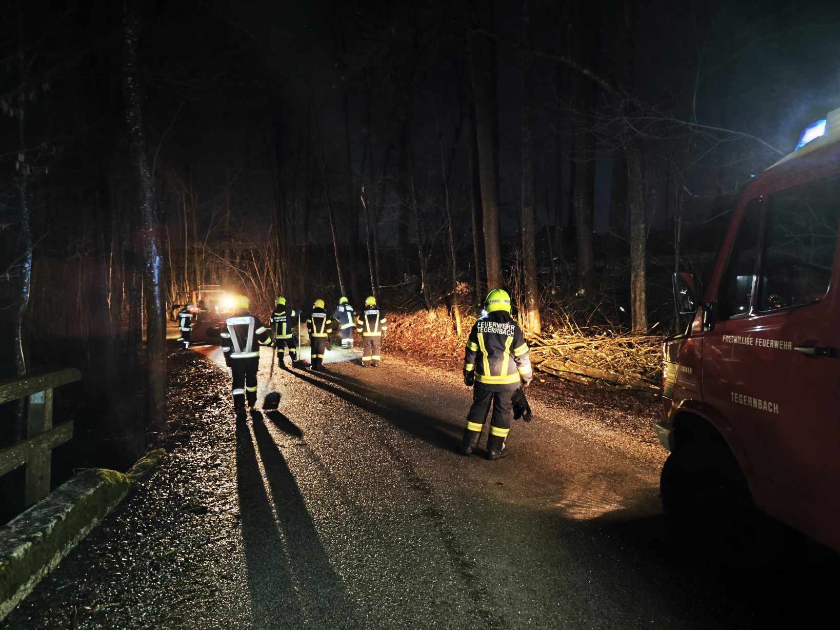 Da zur selben Zeit eine Schulung im Feuerwehrhaus abgehalten wurde, konnte die FF Tegernbach unverzüglich zum Einsatzort ausrücken. Mit dem Einsatz von zwei Motorsägen wurden die Bäume zerkleinert und im Anschluss mittels Traktor und Seilwinde von der Fahrbahn entfernt. Nach 45 Minuten konnte die Straßensperre wieder aufgehoben und der Einsatz beendet werden.