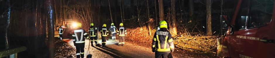 Am Freitag, 26. Jänner 2024 wurde kurz vor 21:00 Uhr die FF Tegernbach zu einem Einsatz „Baum über Straße“ nach Margarethen alarmiert. Durch eine heftige Sturmböe stürzten zwei Bäume um und blockierten die Fahrbahn von Tegernbach Richtung Margarethen.