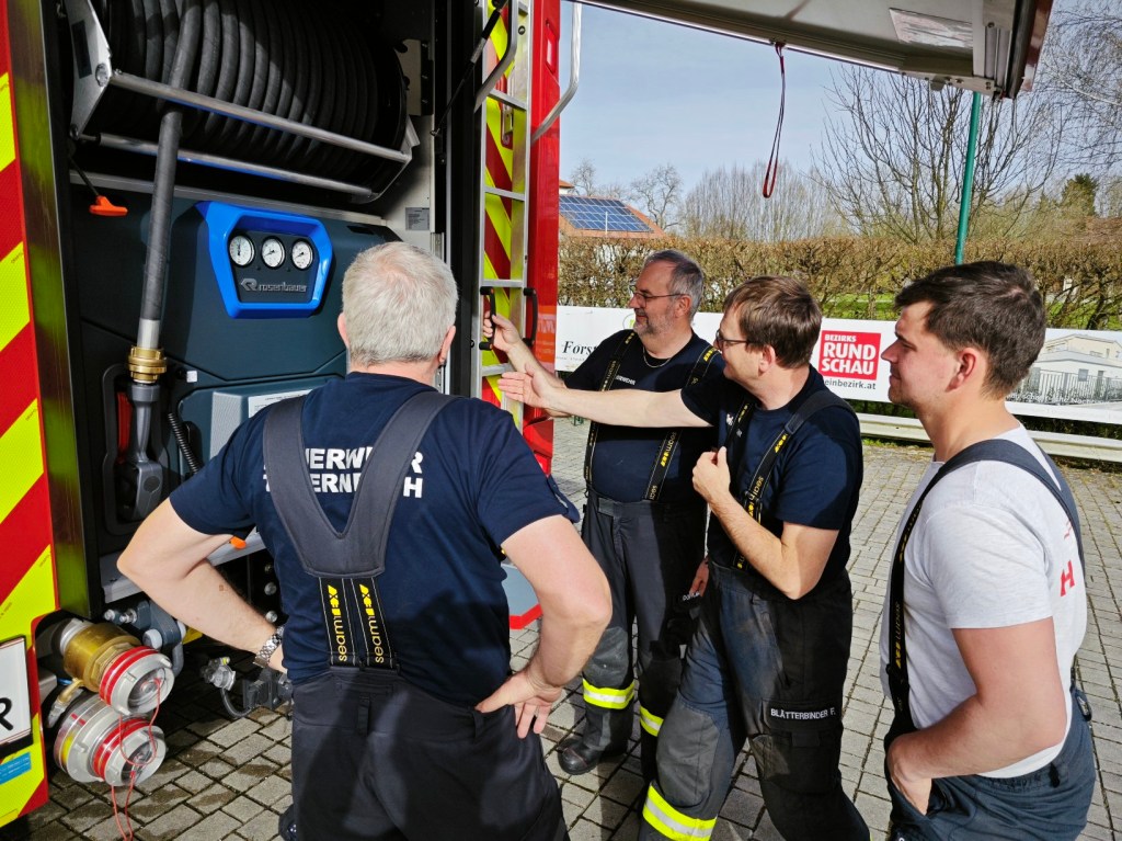 Die gesamte Mannschaft wurde am Karwochenende intensiv auf das neue TLF geschult. Am Programm stand aufgeteilt in Stationen eine Pumpenschulung, Gerätekunde und taktische Grundsätze. In drei Blöcken aufgeteilt nahmen jeweils 16, 12 und 11 Kameraden mit je 4 Stunden teil.