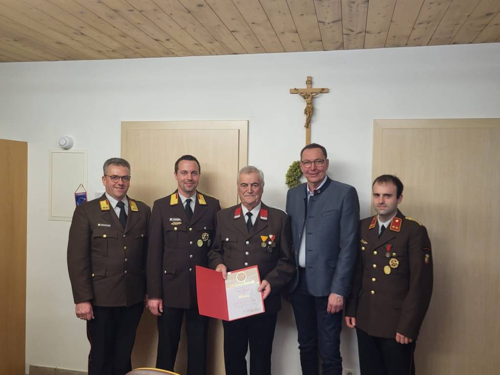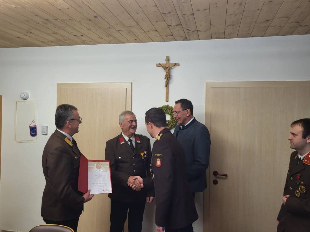 Für die 60 jährige Mitgliedschaft im Feuerwehrwesen wurde LM Karl Edlbauer die Ehrenurkunde des OÖ-Landesfeuerwehrverbandes verliehen.
