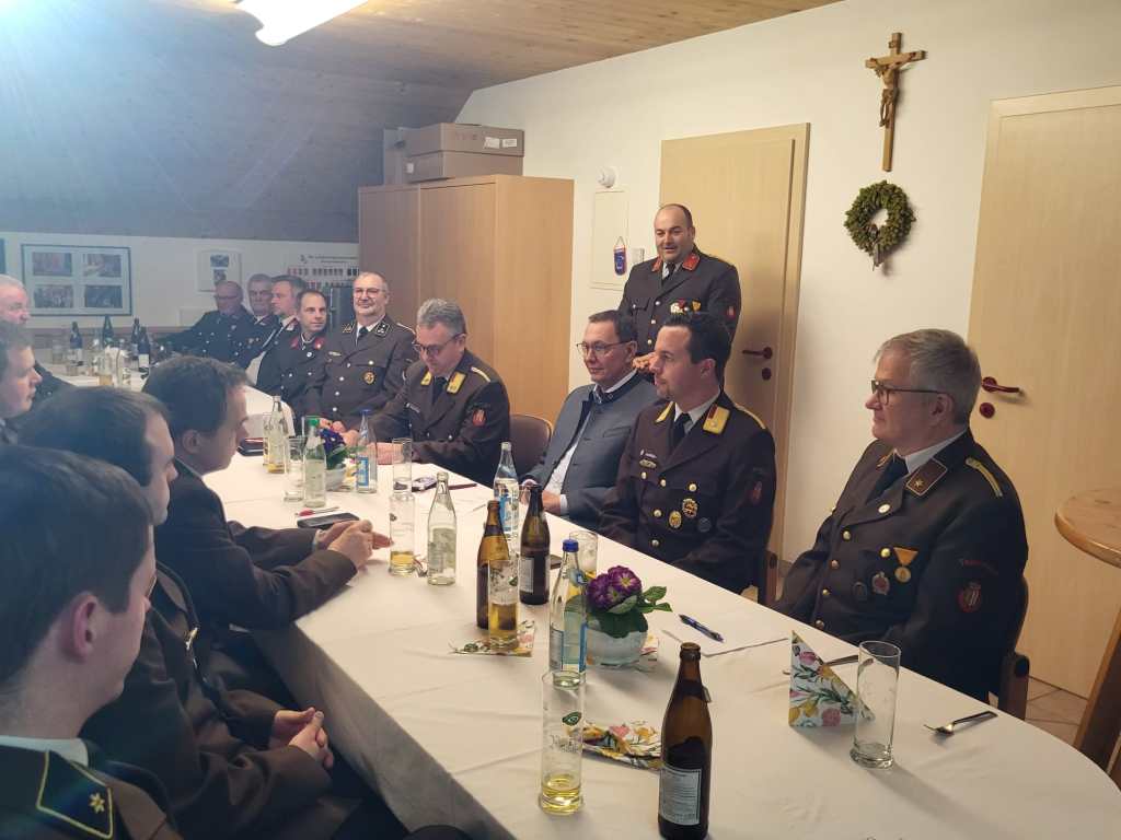 Die anwesenden Ehrengäste, Bürgermeister Klaus Höllerl und Abschnittsfeuerwehrkommandant BR Johann Kronsteiner, bedankten sich bei den Kameraden der FF Tegernbach für die herausragenden Leistungen im vergangenen Jahr.