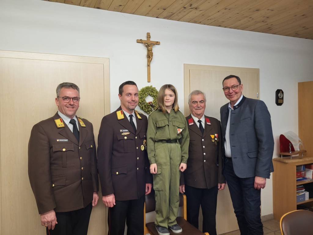 Im Zuge der Vollversammlung wurde Mia Rudolf als neues Mitglied der Feuerwehrjugend angelobt.