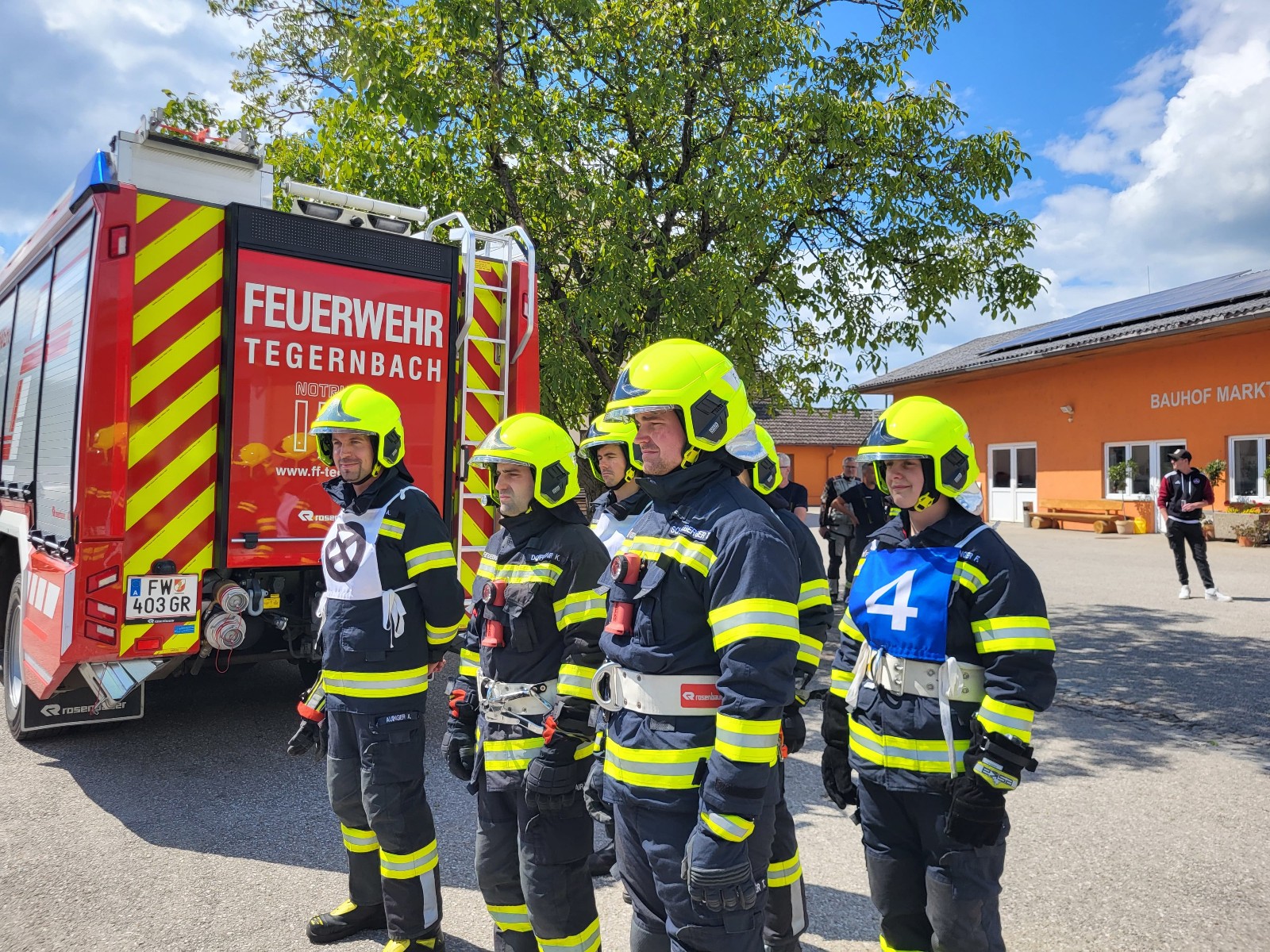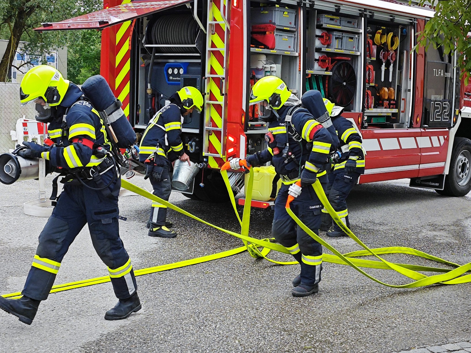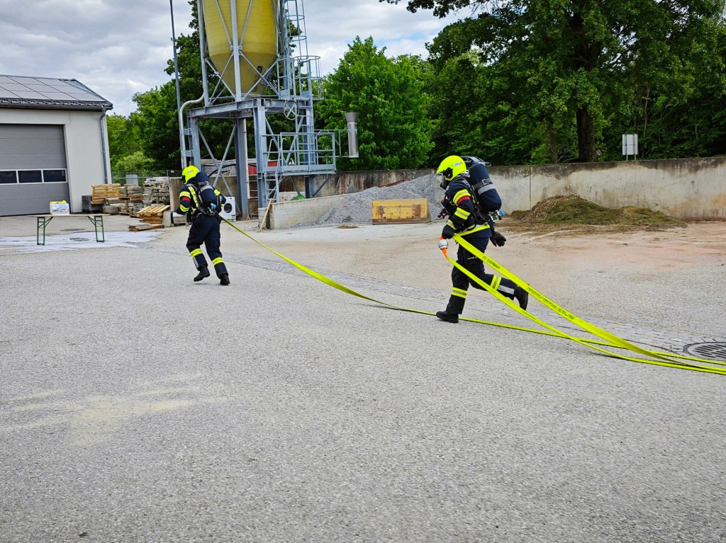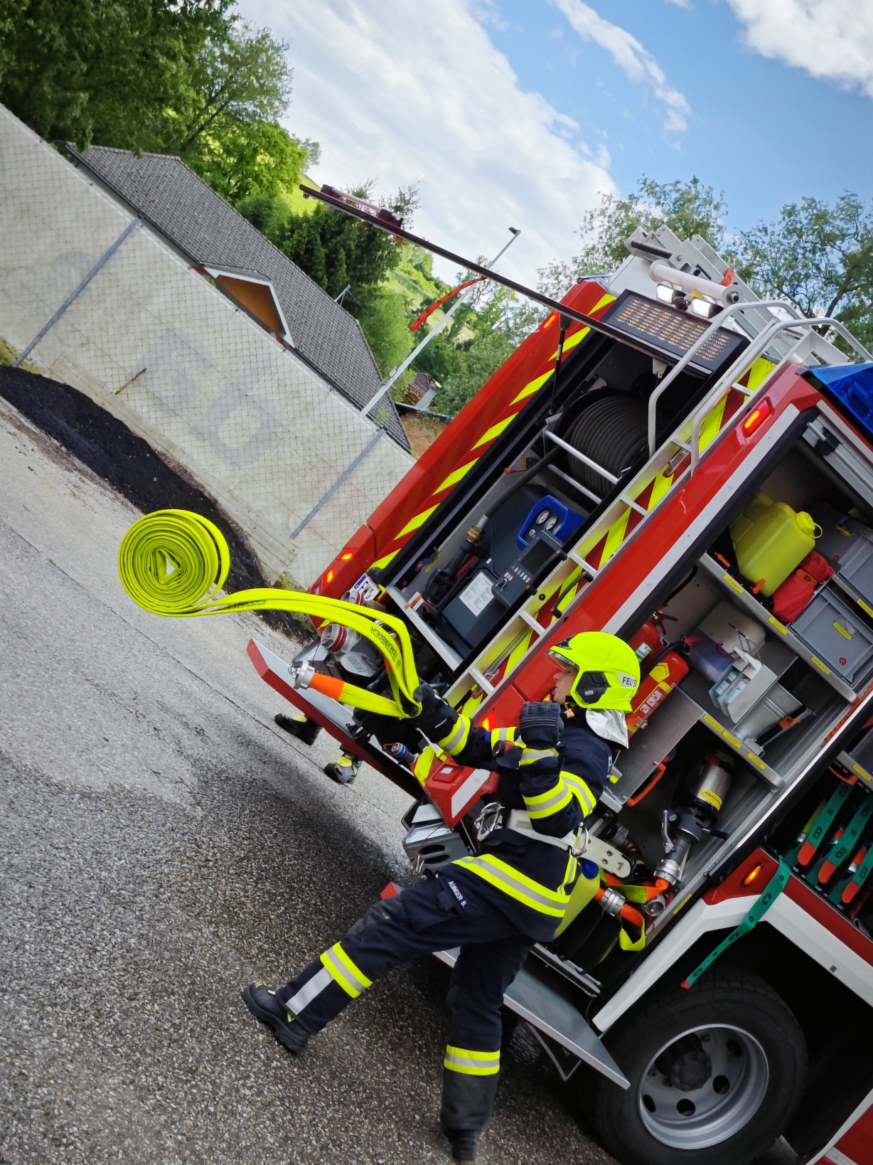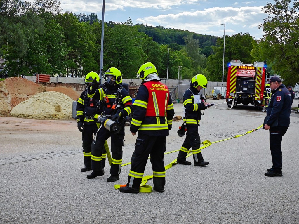 Nachdem die Gerätekunde positiv abgeschlossen wurde, erfolgte der Löschangriff in einer Sollzeit von 03:40 – 04:30 Minuten. Zwei Gruppen mussten einen Flüssigkeitsbrand mittels Mittelschaum unter Atemschutz und eine Gruppe einen Zimmerbrand bewältigen.