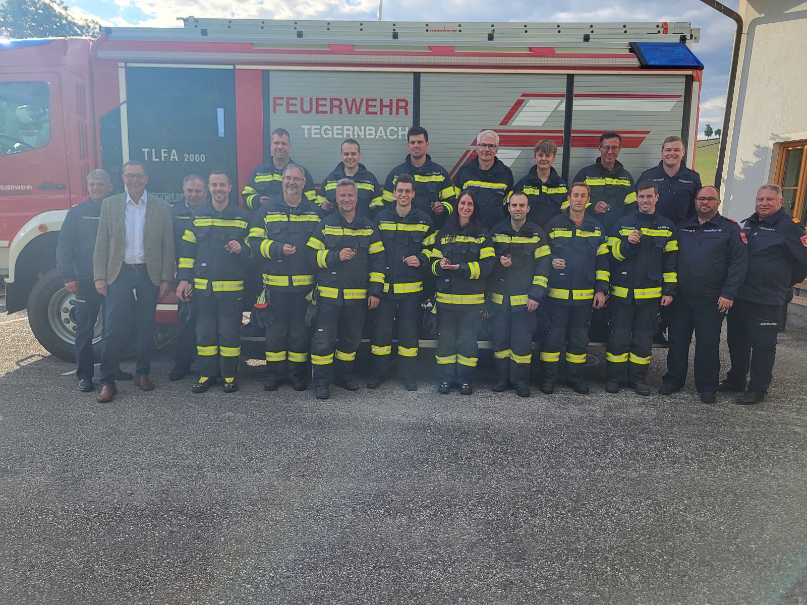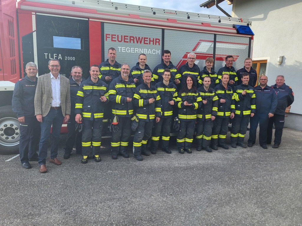 Alle Kameraden konnten das Leistungsabzeichen in Bronze erwerben. Bei der freudigen Verleihung der Abzeichen waren BR Lindenbauer und Bürgermeister Klaus Höllerl anwesend.