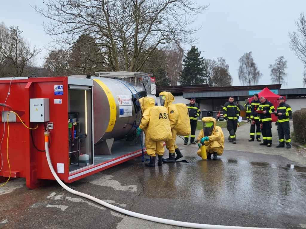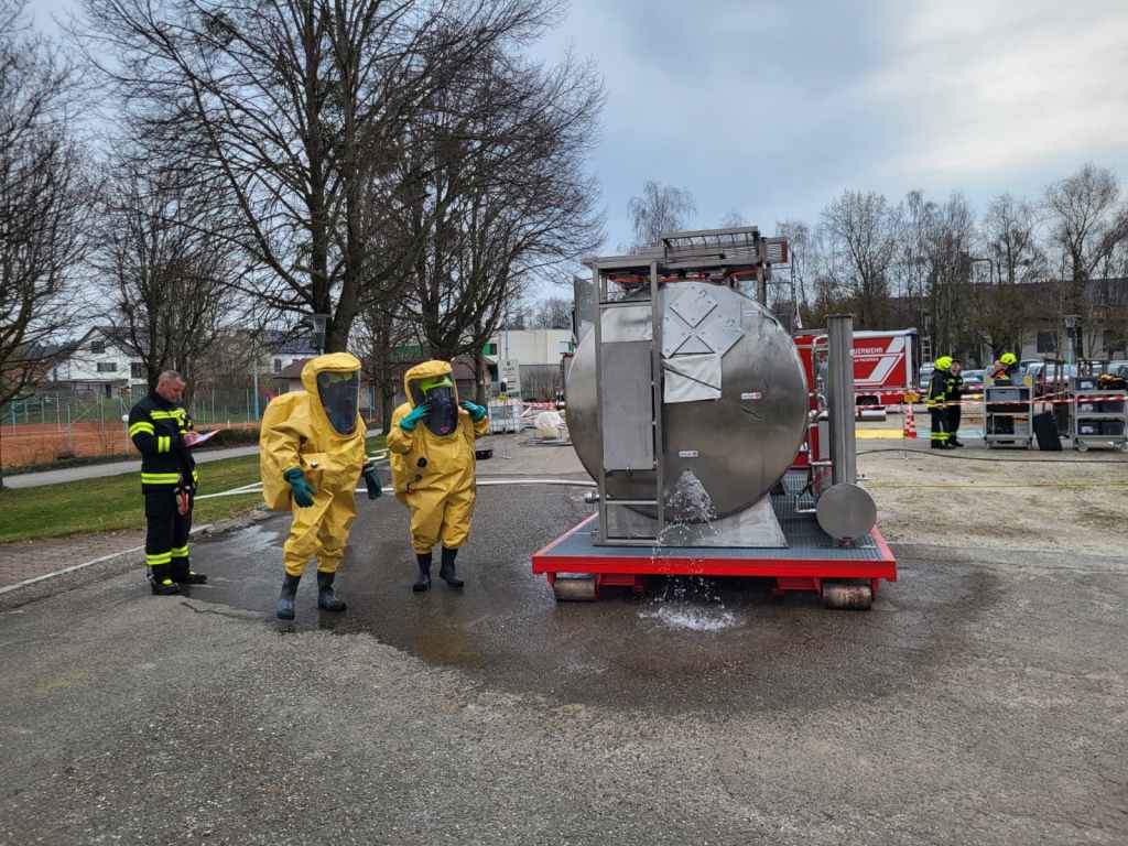 Am Samstag, 21. März 2026 nahm ein Trupp der Feuerwehren Tegernbach und Schlüßlberg beim CSA-Fortbildungstag in Haag am Hausruck teil. Die anspruchsvolle Einsatzübung wurde am Abrollbehälter Gefahrgut der OÖLFS durchgeführt. Nach dem erfolgreichen Abdichten der Leckagen ging es für den Trupp weiter zur Dekontamination.