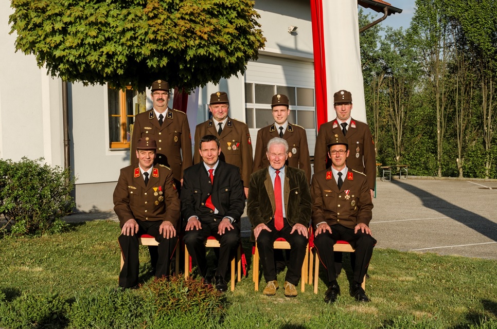 stehend von links nach rechts: Schriftführer AW Norbert Dopplmair, Gerätewart AW Christian Moser, Kassenführer AW Clemens Strasser, Gruppenkommandant HBM Franz Roiter jun.